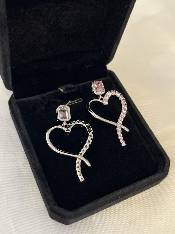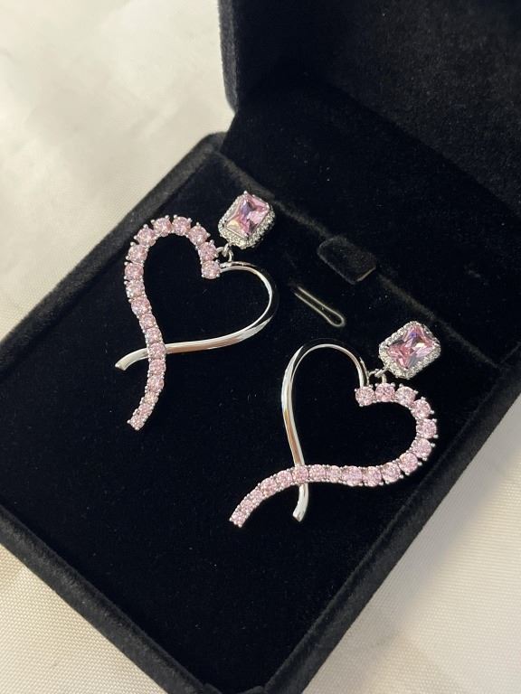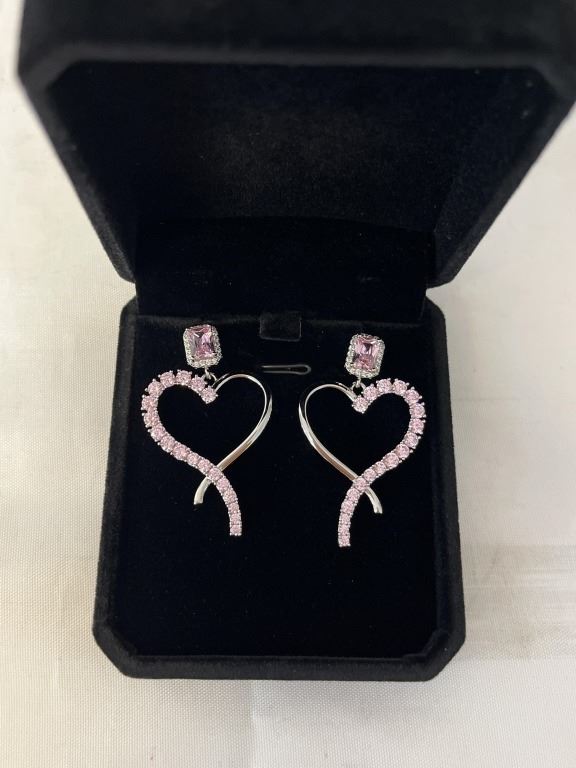 NEW PLATINUM PLATED 1.0CT EACH EMERALD CUT PINK SIMULATED DIAMOND (CZ) DANGLE EARRINGS