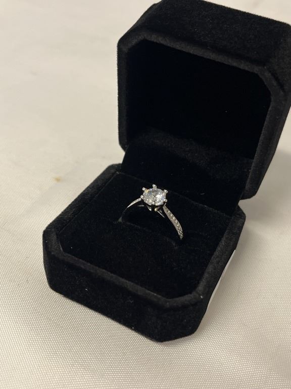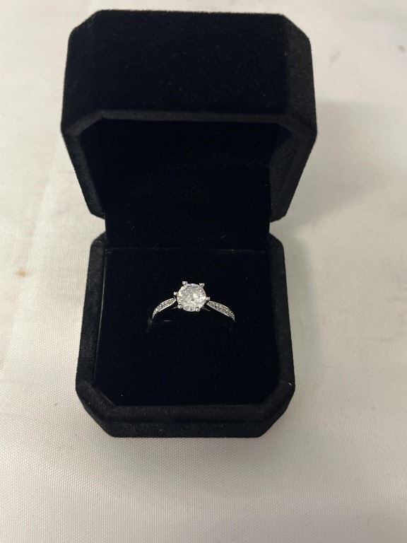 NEW PLATINUM PLATED 1.0CT SIMULATED DIAMOND (CZ) CHANEL RING - SIZE 6.5