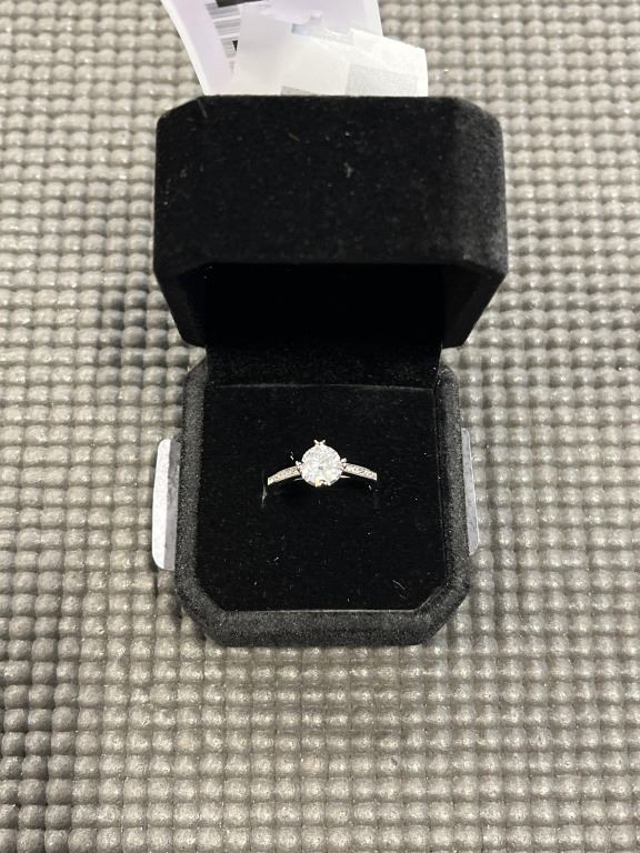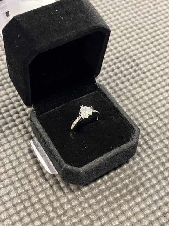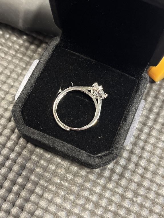 NEW PLATINUM PLATED 1.0CT SIMULATED DIAMOND (CZ) HEART PRONG RING, RESIZEABLE