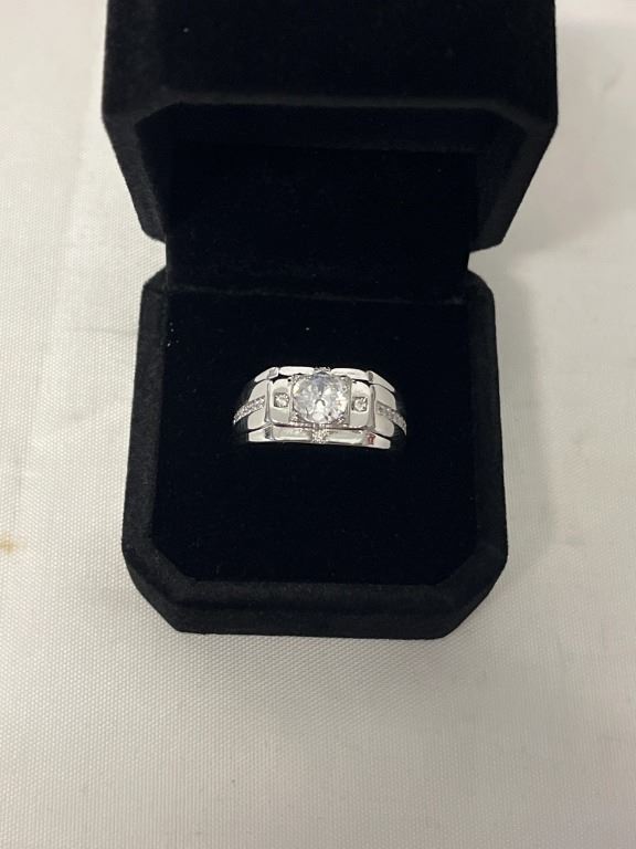 NEW PLATINUM PLATED 1.0CT SIMULATED DIAMOND (CZ) MANS RINGS, RESIZEABLE