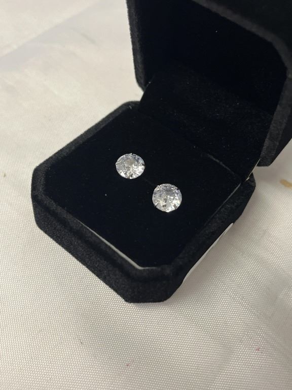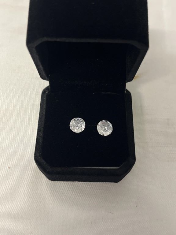 NEW PLATINUM PLATED 2.0CT EACH SIMULATED DIAMOND (CZ) STUD EARRINGS