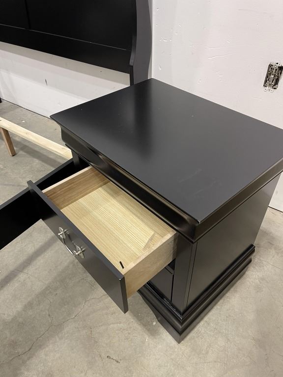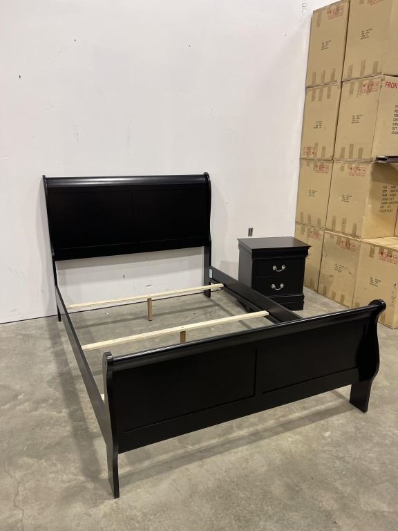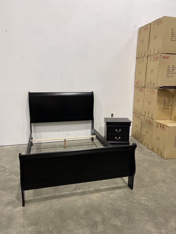 NEW QUEEN SIZE BLACK AVENZA BEDFRAME AND NIGHT STAND