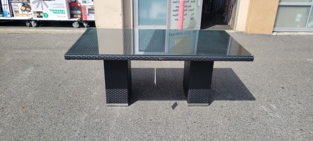 NEW RATANA 72 X 40 BLACK CASA MADRID PATIO TABLE WITH TEMPERED GLASS TOP, 2 BOX LOT