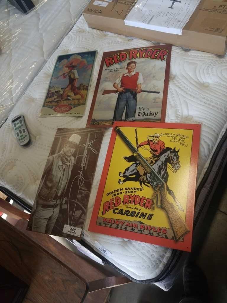 NEW RED RYDER, JOHN WAYNE AND COCA COLA TIN SIGNS