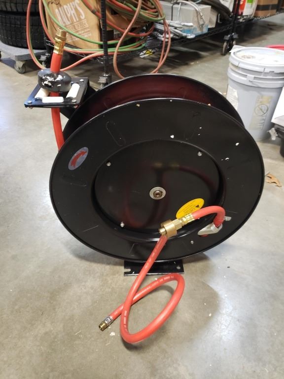 NEW RETRACTABLE HOSE REEL WITH 50FT LONG 3/8 INCH 10MM RUBBER AIR HOSE 300PSI/20BAR