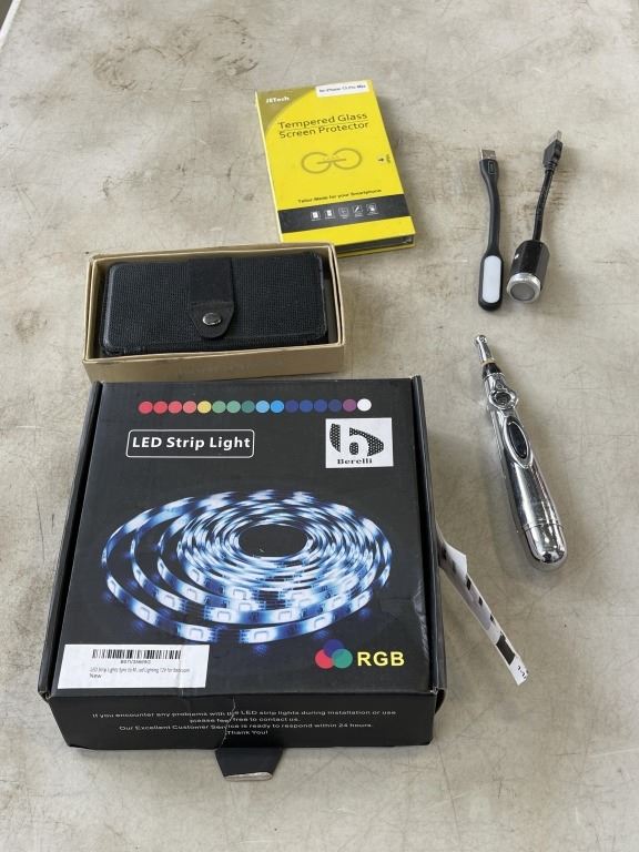 NEW RGB LED ATRIP LIGHT WITH FOLDIJG SOLAR POWER BANK CHARGER, ELECTRONIC ACUPUNCTURE PEN, USB FLASHLIGHTS AND TEMPERATURED GLASS IPHONE PROTECTOR
