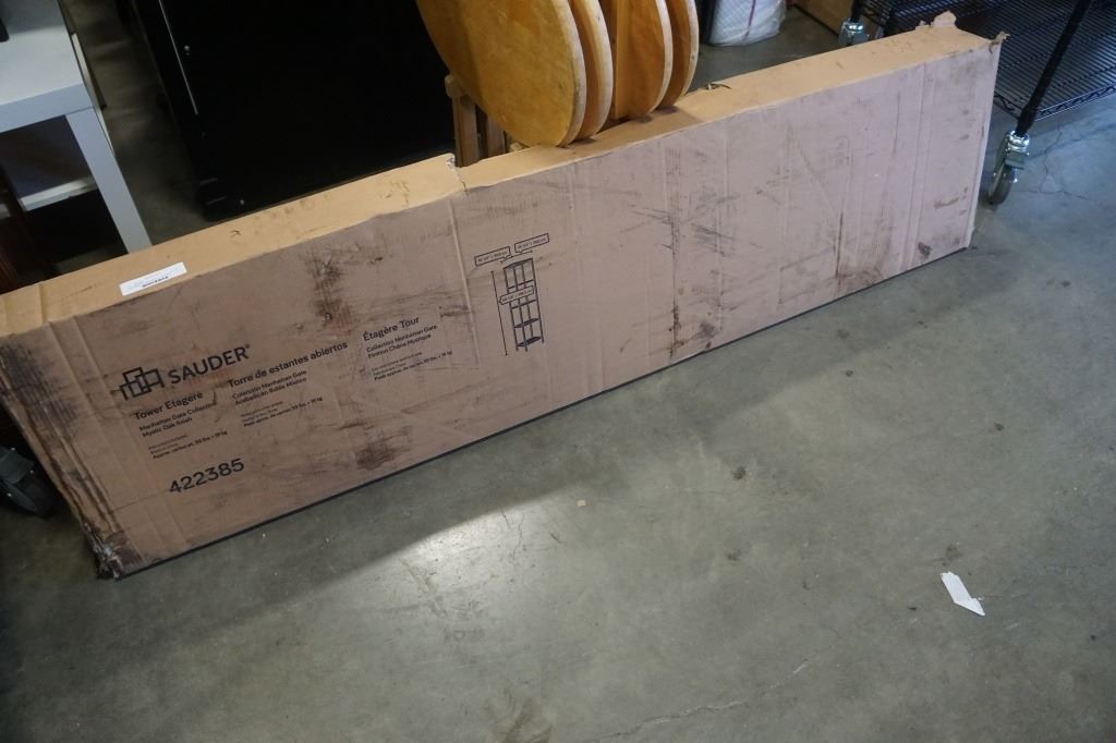 NEW SAUDER TOWER MYSTIC OAK FINISH SHELVING UNIT