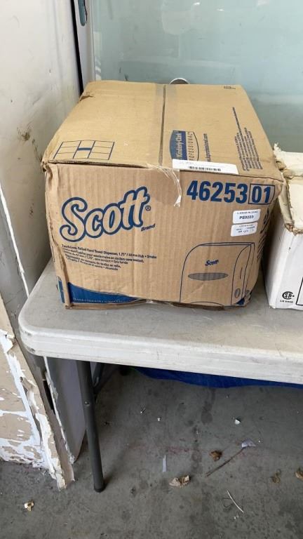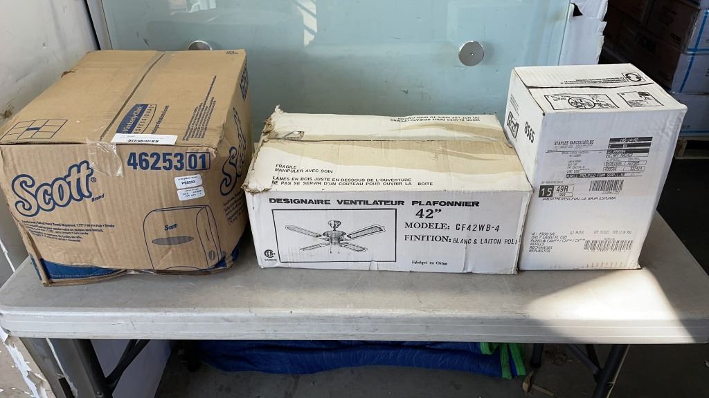 NEW SCOTT TOUCHLESS PAPER TOWEL DISPENSER BOX OF PURELL SOAP AND 42" CEILING FAN IN BOX