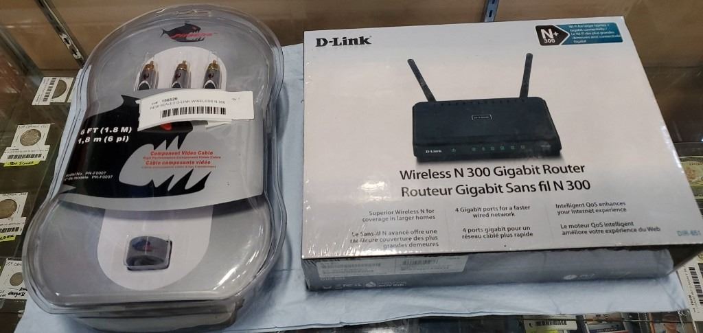 NEW SEALED D-LINK WIRELESS N 300 GIGABIT ROUTER AND MONSTER 6FT COMPONENT VIDEO CABLE