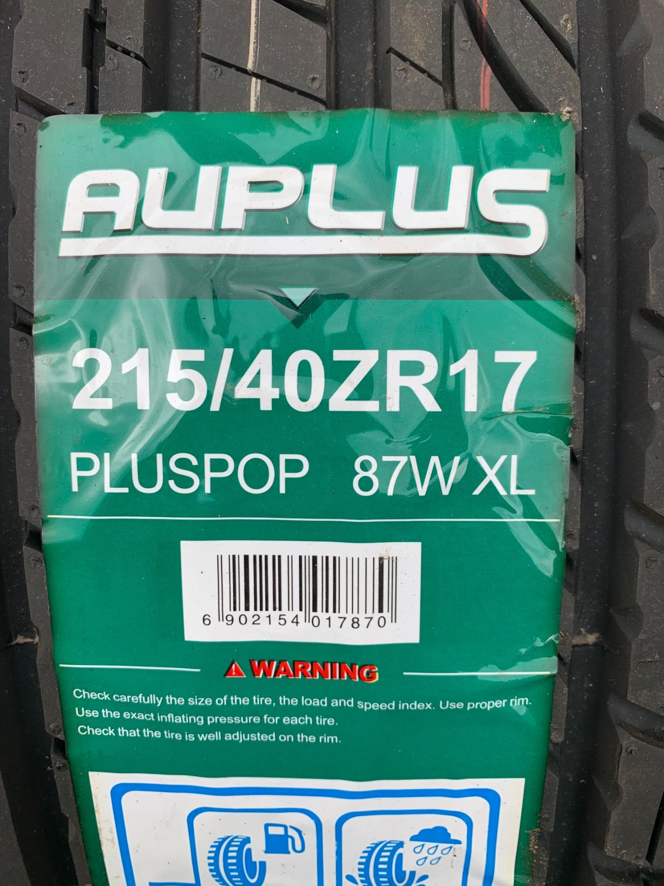 *NEW* SET OF 4 AUPLUS PLUSPOP 215/40ZR17 87W XL TIRES **$6.50/TIRE ECO-LEVY WILL BE CHARGED**