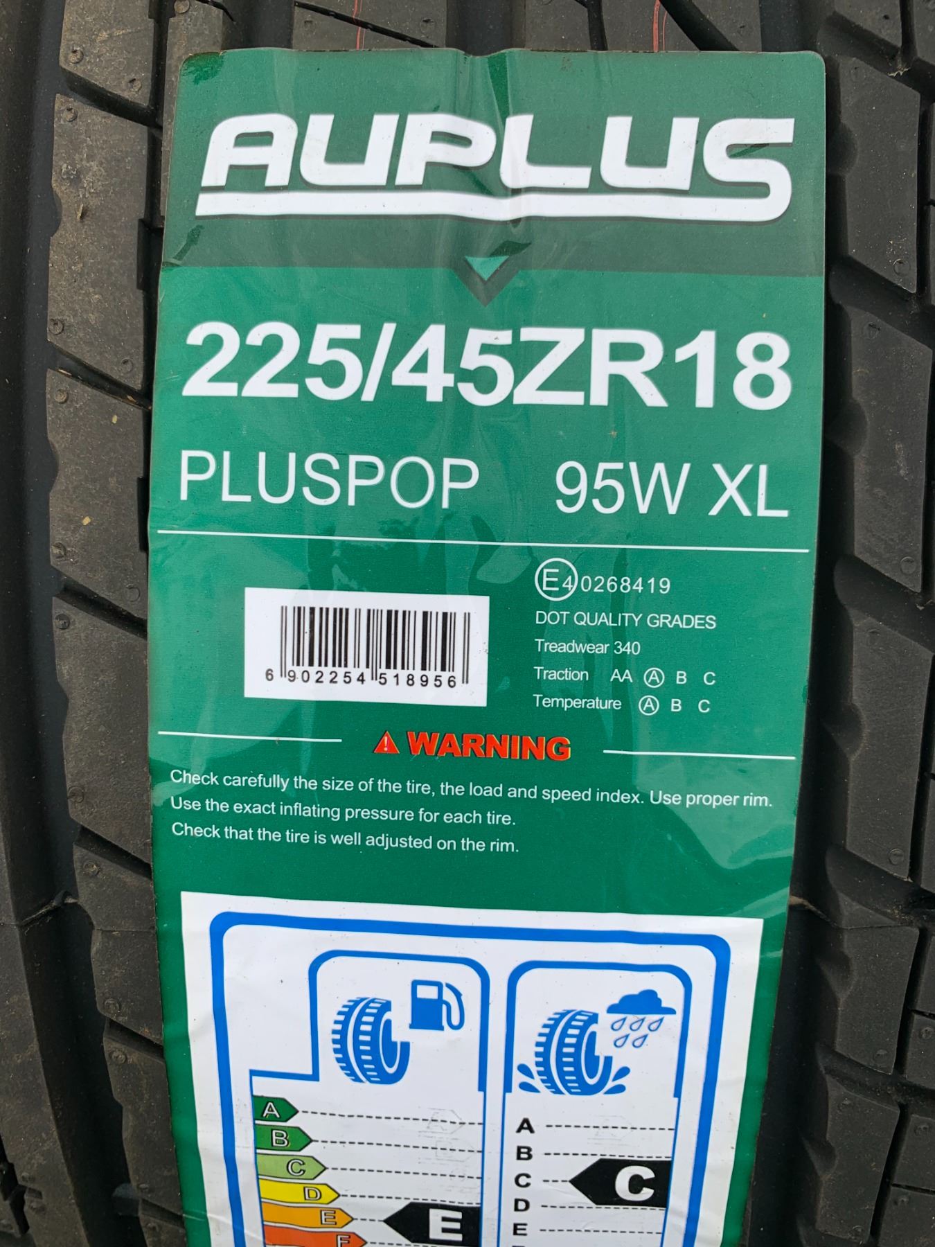 *NEW* SET OF 4 AUPLUS PLUSPOP 225/45ZR18 95W XL TIRES **$6.50/TIRE ECO-LEVY WILL BE CHARGED**