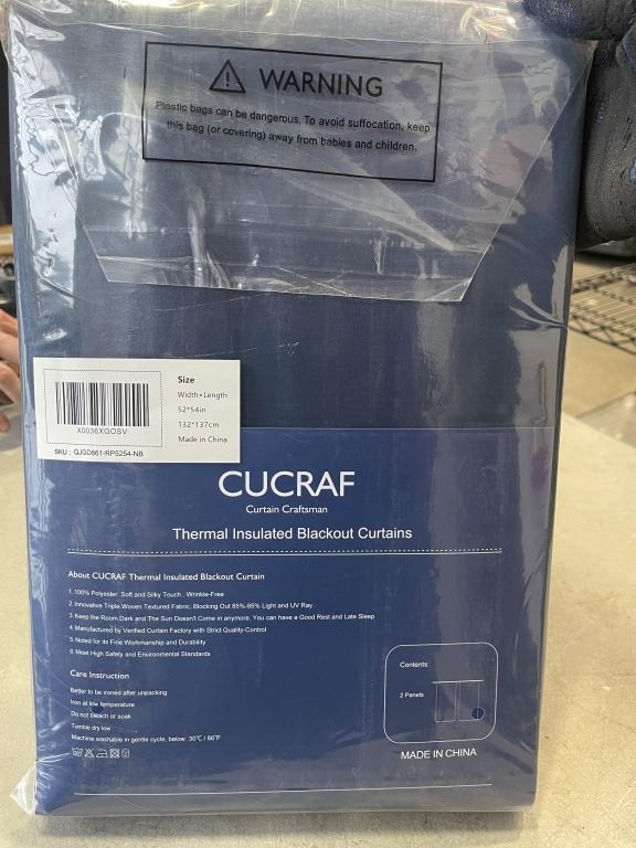 NEW SET OF DARK BLUE THERMAL INSULATED BLACKOUT CURTAINS, 2 PANELS, 52 X 63 INCH EACH
