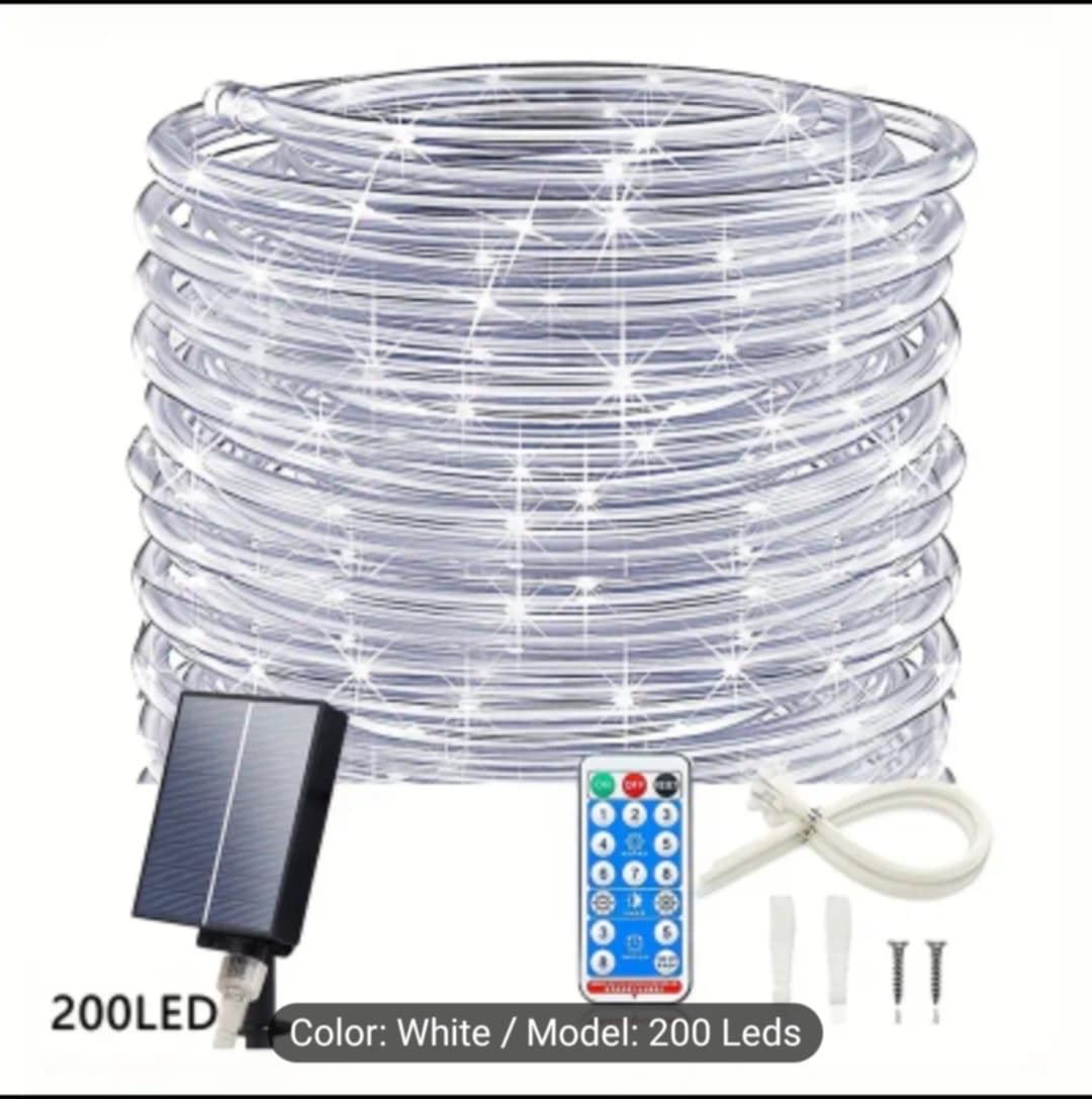 NEW SOLAR ROPE LIGHTS OUTDOOR, 66FT 200 LED STRING LIGHTS WITH REMOTE, OUTDOOR 8 MODES GARDEN ROPE L
