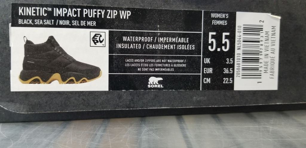 NEW SOREL KINETIC IMPACT PUFFY ZIP WATERPROOF BOOT SIZE WOMENS 5.5