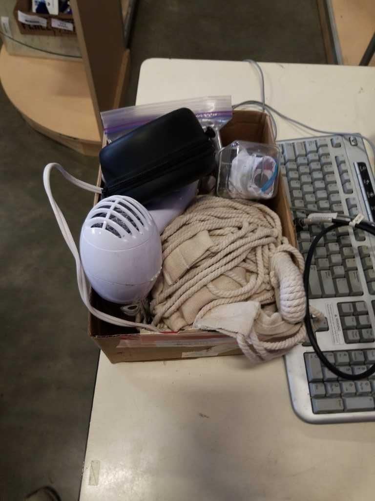 NEW STARLINE BLUETOOTH HEADSET, CONAIR HAIR DRYER, MONITOR, KEYBOARD, KNIVES, HAMMOCK