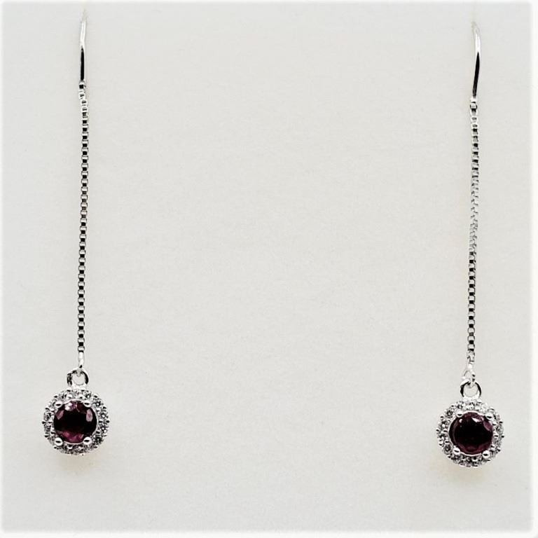NEW STERLING SILVER 4.45MM X 4.43MM NATURAL RUBY (0.68CTS) & CZ EARRINGS, W/A $700.00