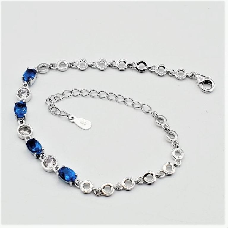 NEW STERLING SILVER 6MM X 4MM GENUINE APATITE (1.72CTS) & CZ BRACELET, W/A $755.00
