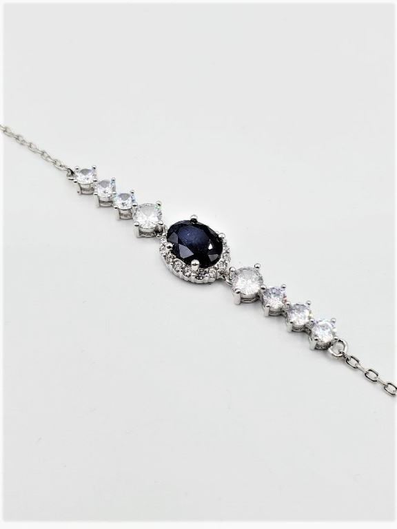 NEW STERLING SILVER 7.6MM X 6MM NATURAL SAPPHIRE (1.28CTS) & CZ BRACELET, W/A $860.00, SAPPHIRE IS T