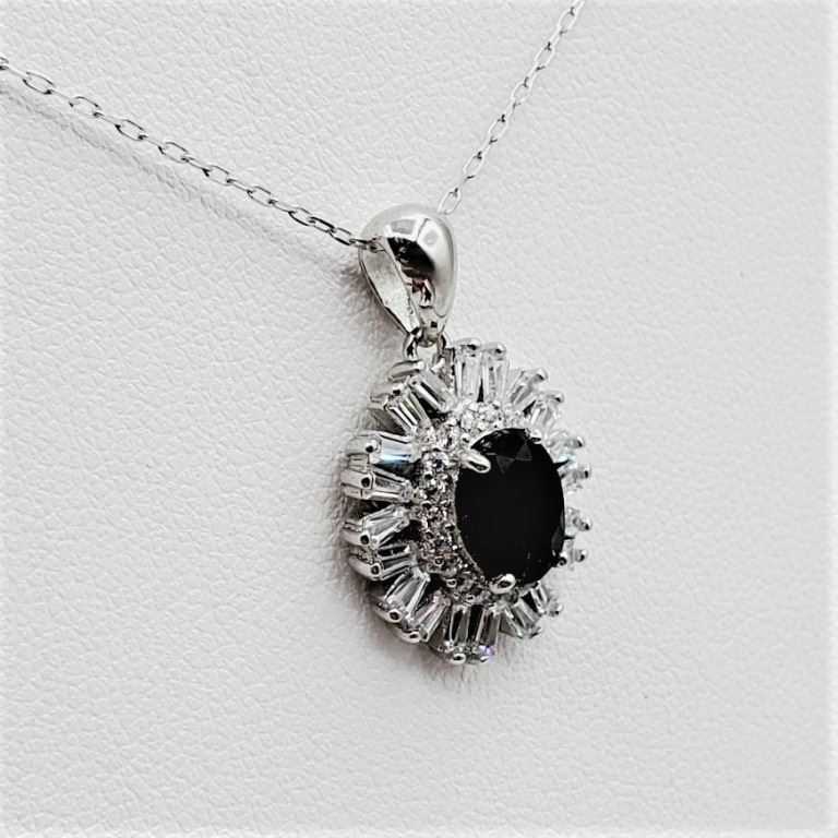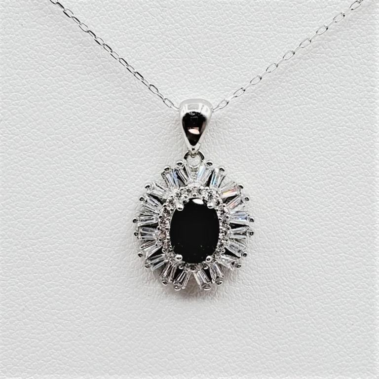 NEW STERLING SILVER 7.72MM X 6MM GENUINE CHROME DIOPSIDE (1.25CTS) & CZ PENDANT WITH STERLING CHAIN,
