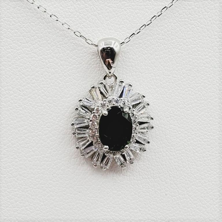 NEW STERLING SILVER 7.72MM X 6MM GENUINE CHROME DIOPSIDE (1.25CTS) & CZ PENDANT WITH STERLING CHAIN, W/A $750.00