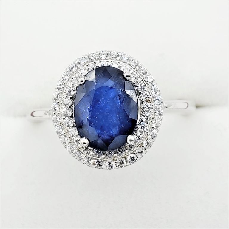 NEW STERLING SILVER 9.25MM X 7.2MM GENUINE SAPPHIRE (2.17CTS) & CZ COCKTAIL RING, W/A $980.00, SIZE 7.5