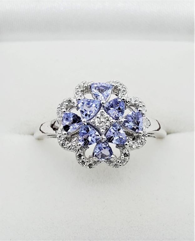NEW STERLING SILVER GENUINE TANZANITE (1CT) & WHITE SAPPHIRE (0.28CTS) RING, W/A $1000.00, SIZE 7