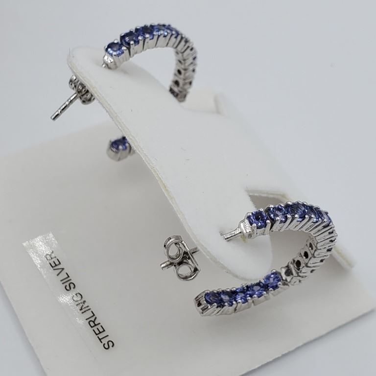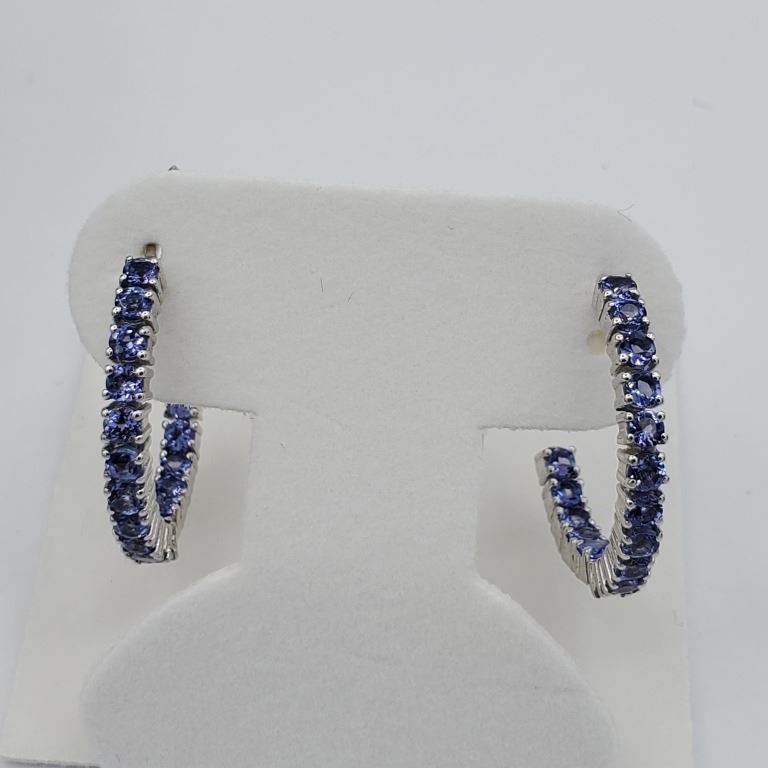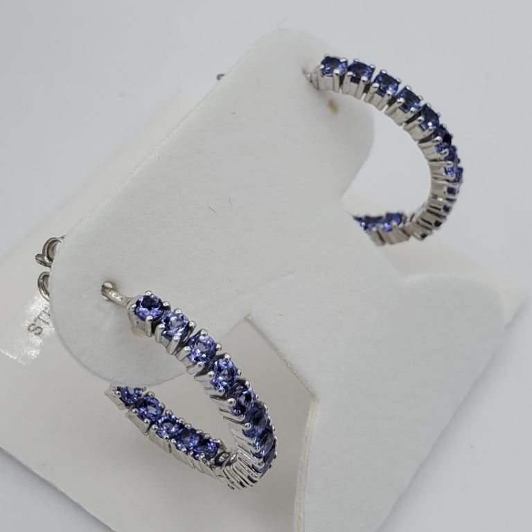 NEW STERLING SILVER GENUINE TANZANITE HOOP EARRINGS W/ APPRAISAL $1040