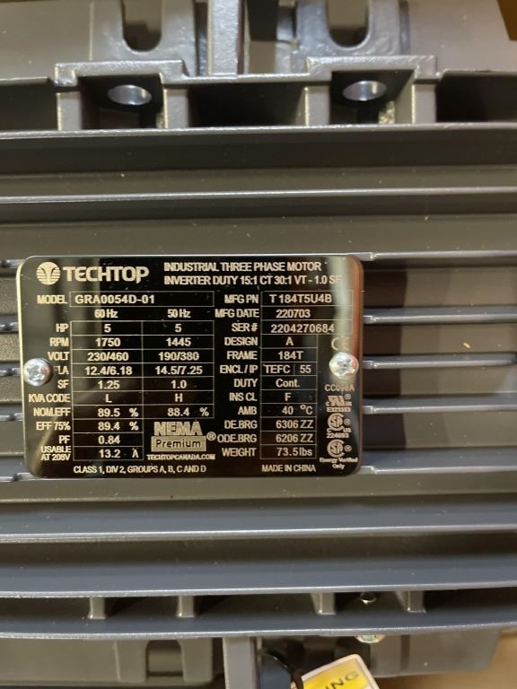 NEW TECH TOP 5HP THREE PHASE ELECTRIC MOTOR