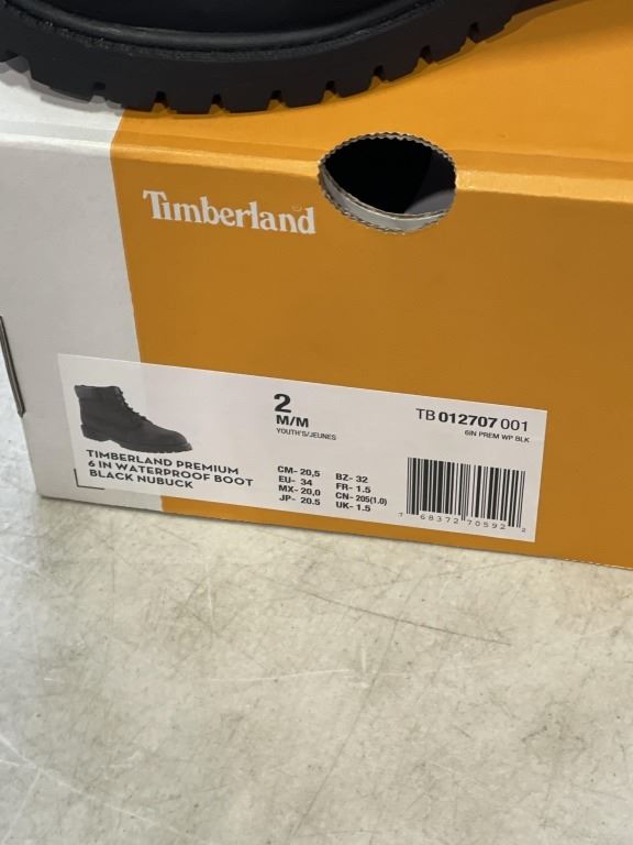 NEW TIMBERLAND PREMIUM 6 IN WATERPROOF BOOT BLACK NUBUCK, SIZE 2 YOUTH