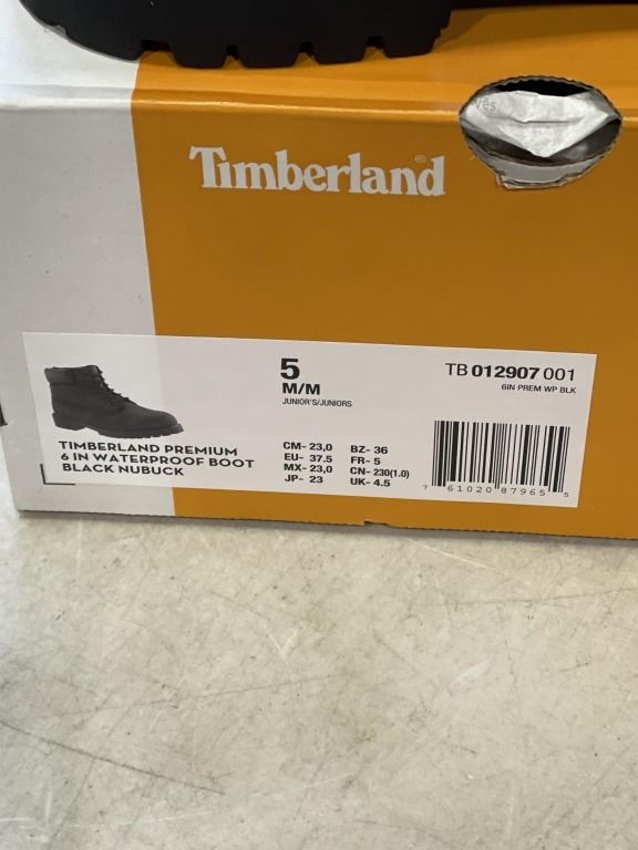 NEW TIMBERLAND PREMIUM 6 IN WATERPROOF BOOT BLACK NUBUCK, SIZE 5 JUNIOR