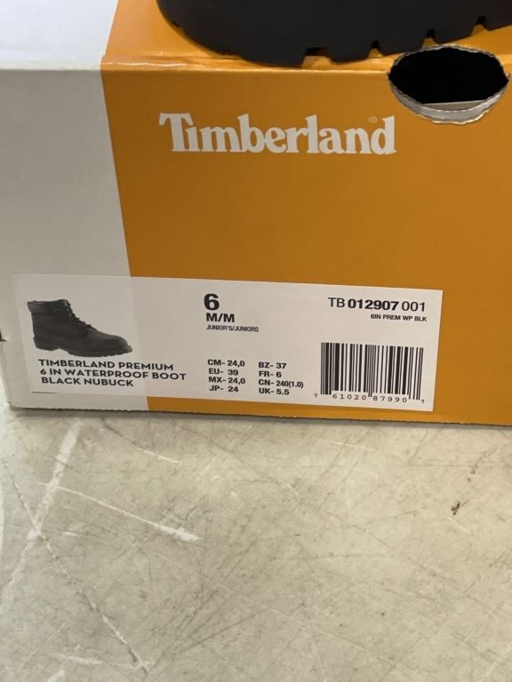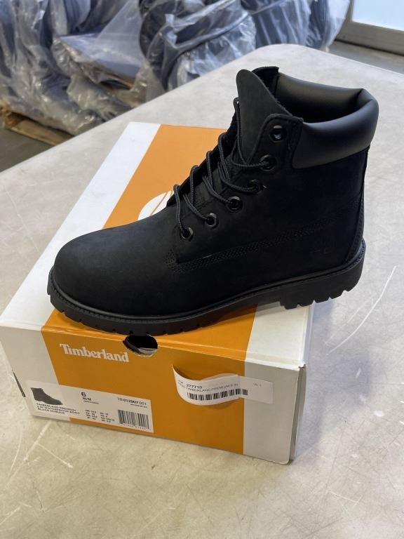 NEW TIMBERLAND PREMIUM 6 IN WATERPROOF BOOT BLACK NUBUCK, SIZE 6 JUNIOR