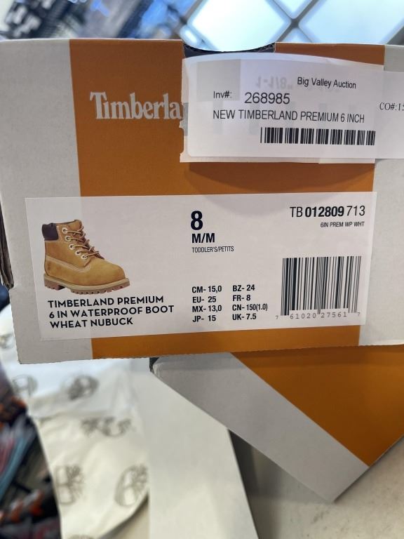 NEW TIMBERLAND PREMIUM 6 INCH WATERPROOF BOOT WHEAT NUBUCK, SIZE TODDLER 8