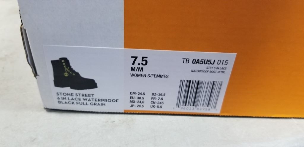 NEW TIMBERLAND STONE STREET 6 INCH LACE WATERPROOF BLACK FULL GRAIN LEATHER BOOTS SIZE WOMENS 7.5