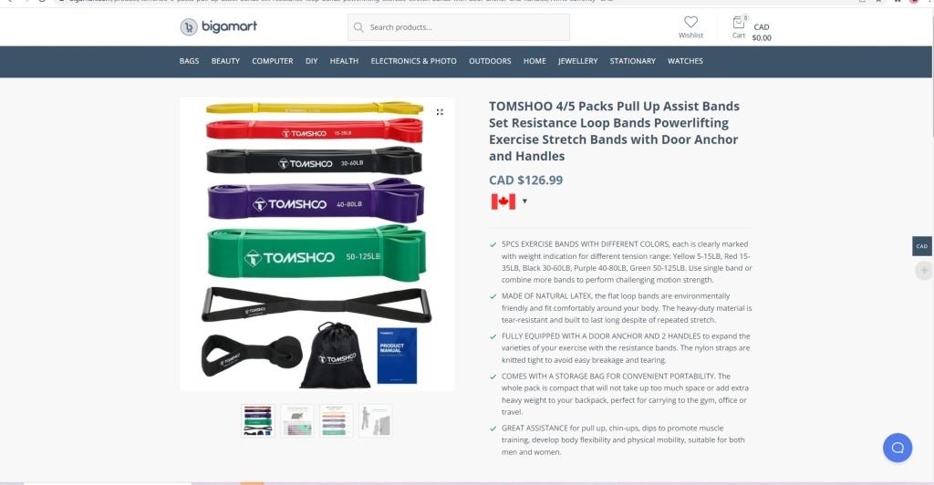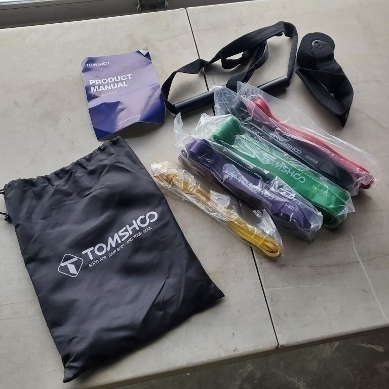 NEW TOMSHOO 15LB -125LB RESISTANCE BAND SET RETAIL $128