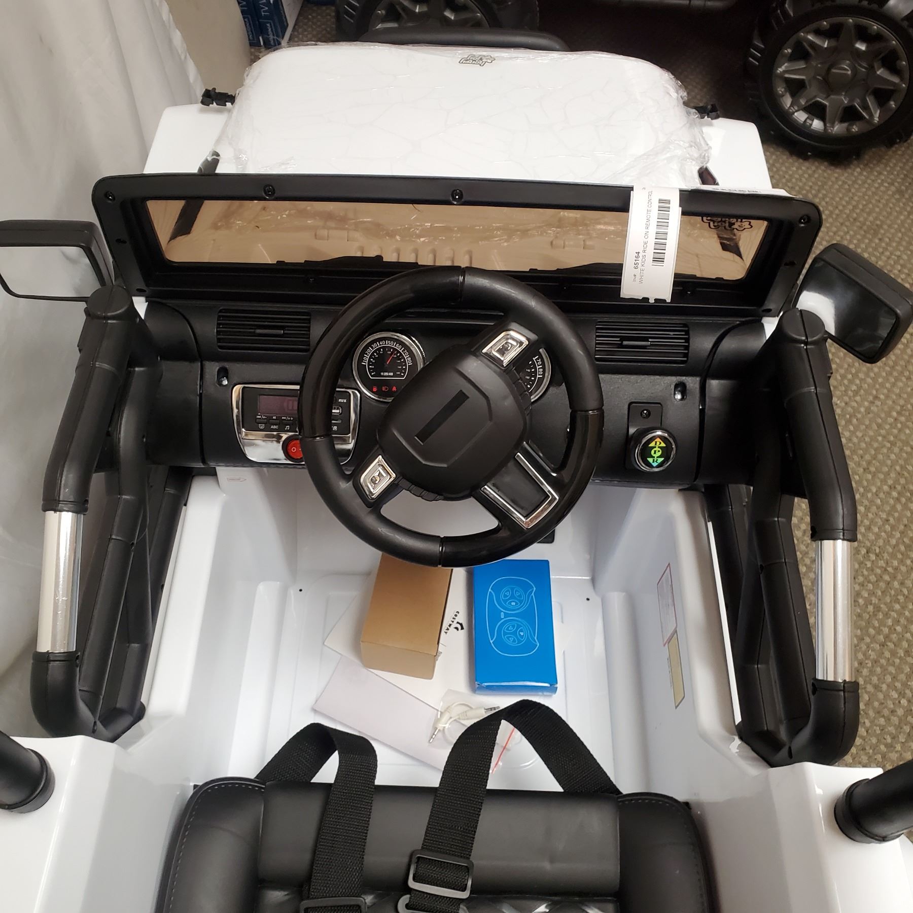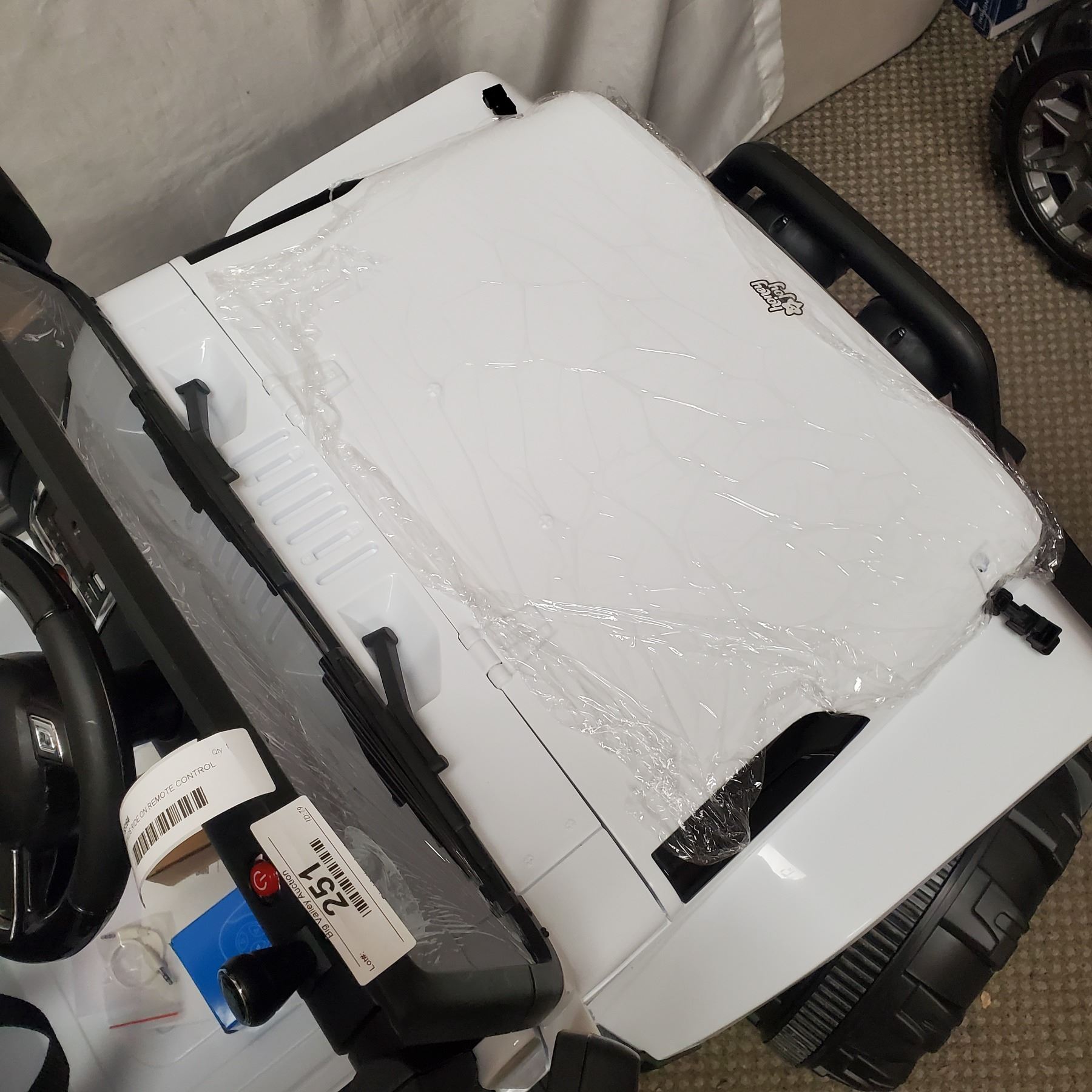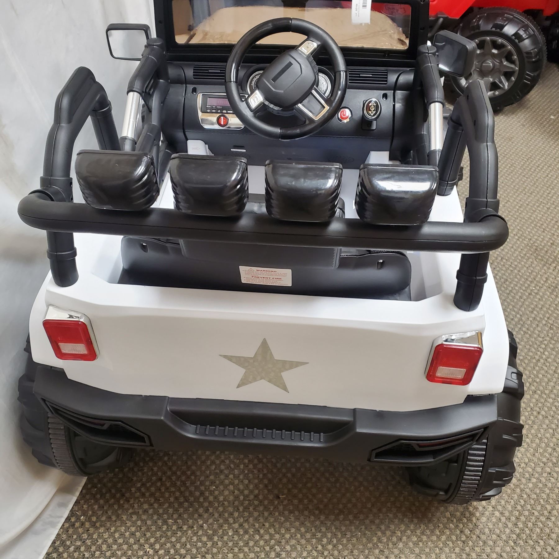 NEW WHITE KIDS RIDE ON JEEP, WITH REMOTE CONTROL AND AUDIO JACK, 12V, RETAIL $499 PRE BUILT