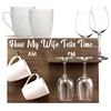 NEW WINE RACK WITH 2 WINE GLASSES AND 2 MUGS - HOW MY WIFE TELLS TIME, RETAIL $69