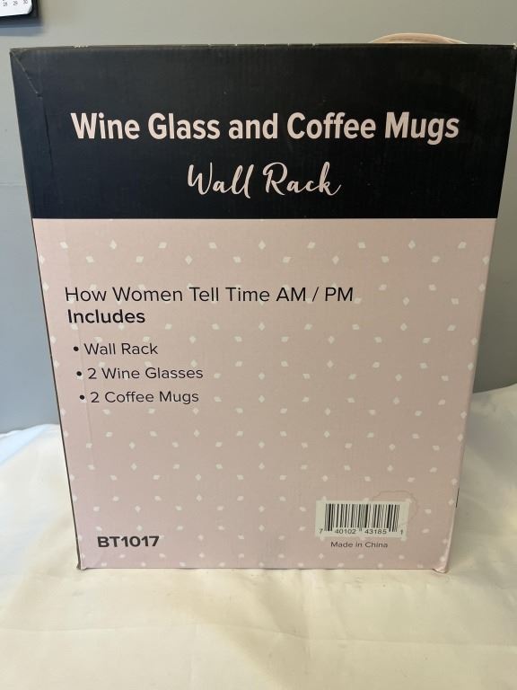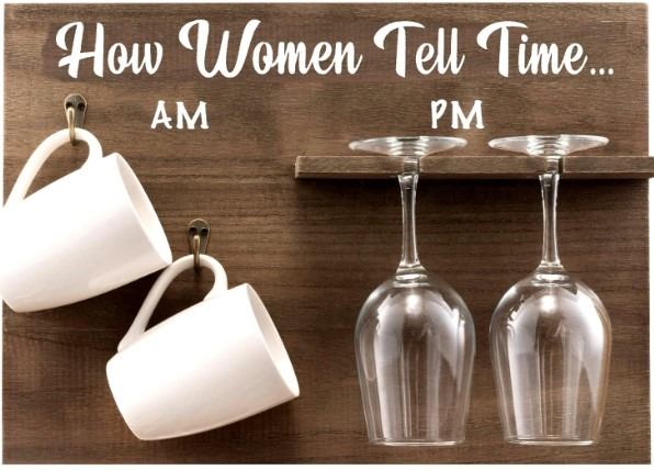 NEW WINE RACK WITH 2 WINE GLASSES AND 2 MUGS - HOW WOMEN TELL TIME, RETAIL $69