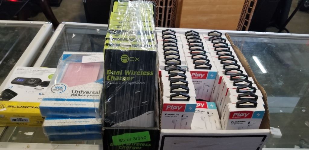 NEW WIRELESS DUAL CHARGERS, 3.5 MM EARBUDS, POWERBANKS AND TWO LEAP PAD CHILDREN 'S LEARNING DEVICES