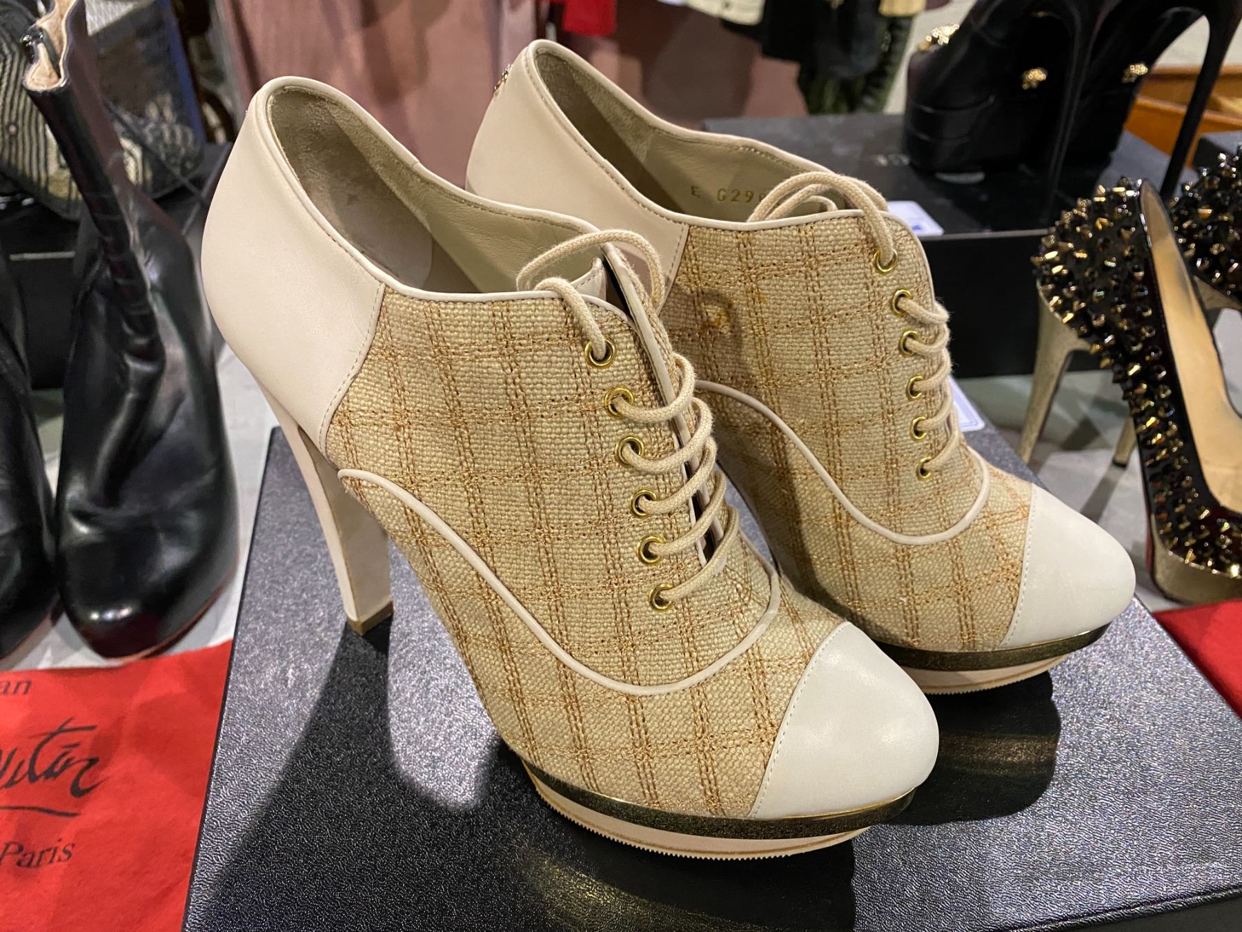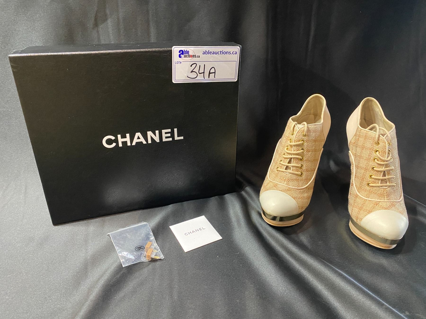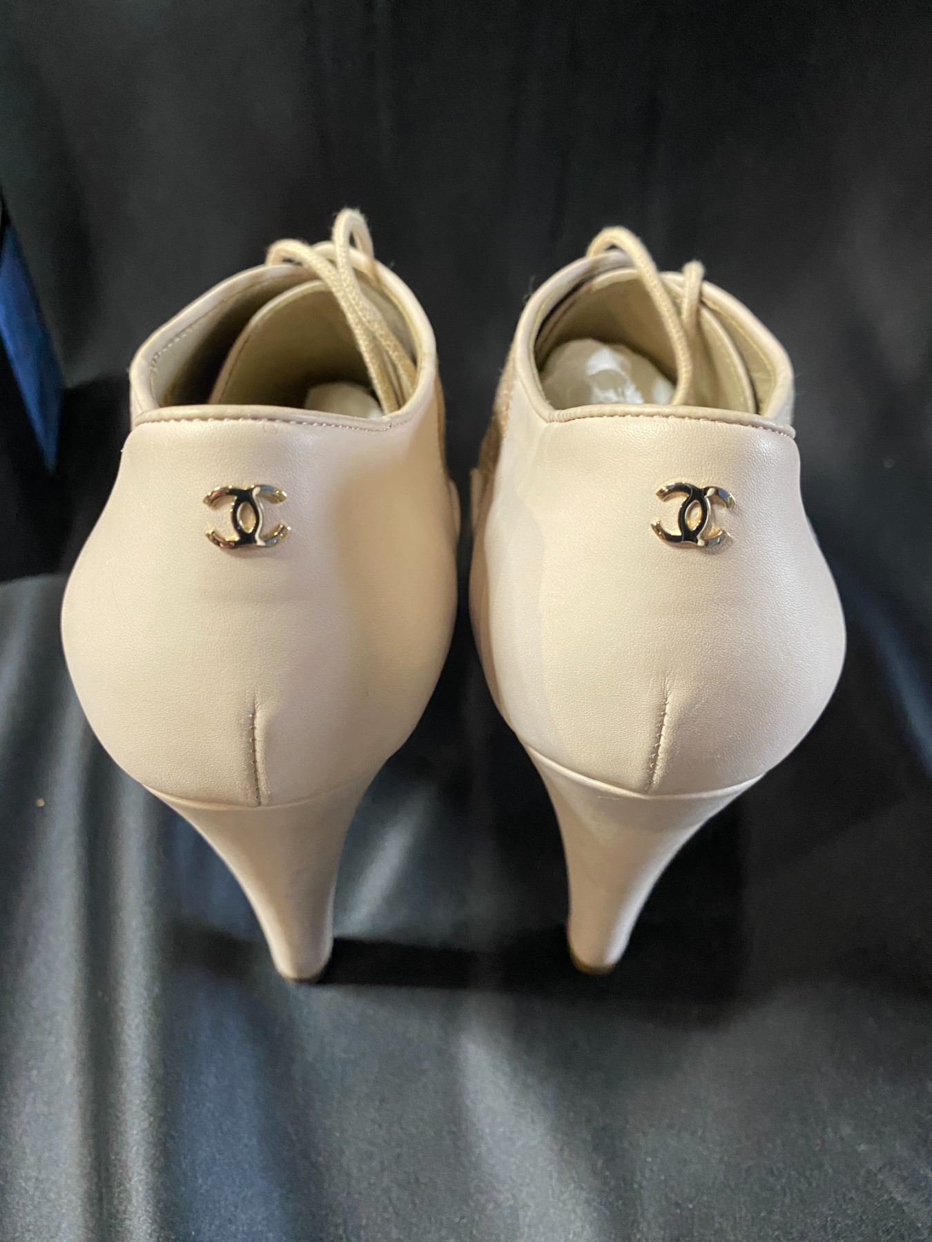 NEW WITH BOX CHANEL SIZE 37 1/2 HIGH HEELS WITH EXTRA HEEL TIPS