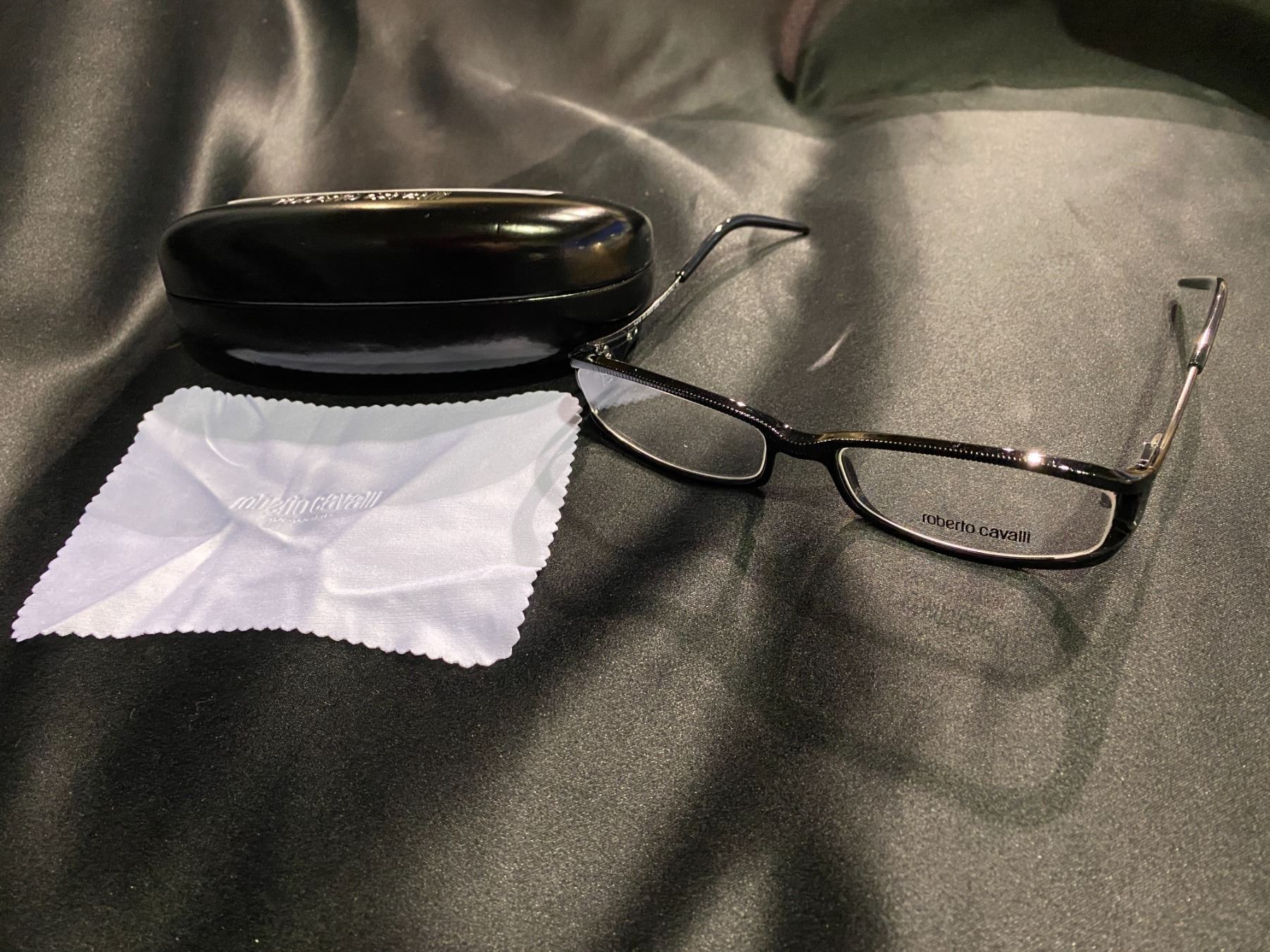 NEW WITH CASE ROBERT CAVALLI BLACK FRAME GLASSES