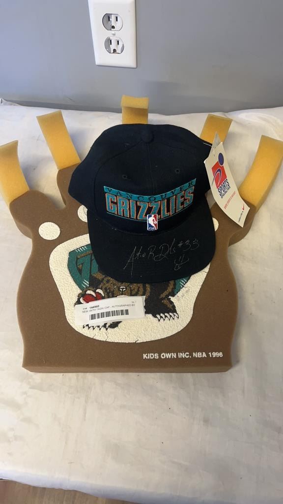 NEW (WITH TAGS) CAP - AUTOGRAPHED BY #33 ANTONIO DANIELS VANCOUVER GRIZZLIES PLUS GRIZZLIE "MITT" 1996