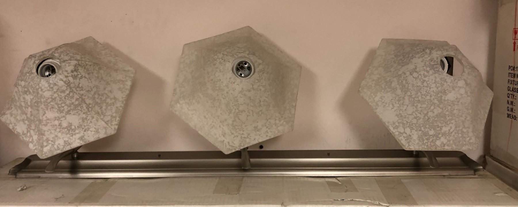 NEW Z-lite 3-light up lighting bathroom fixture w/ glass round shade from the Liberty Collection - model 701-3V (approx 38" W x 13" L x 10" H)