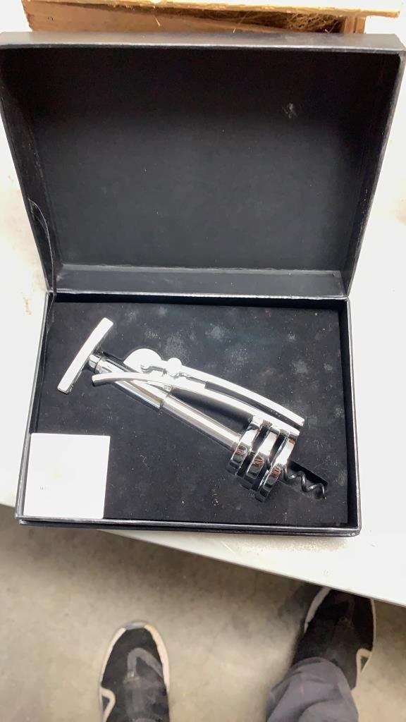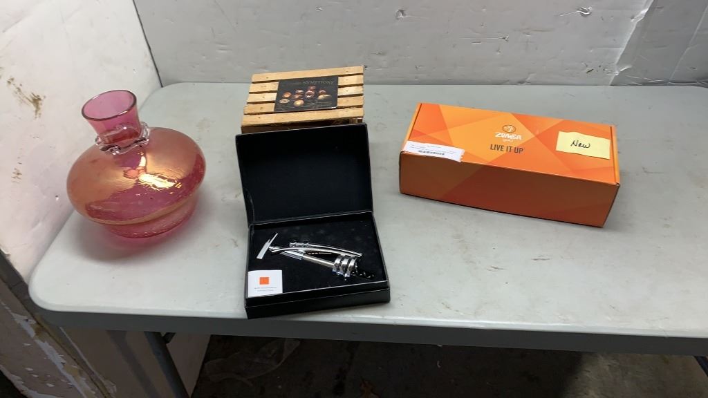 NEW ZUMBA SET WITH ART GLASS VASE STONE CANDLE HOLDER AND CORKSCREW