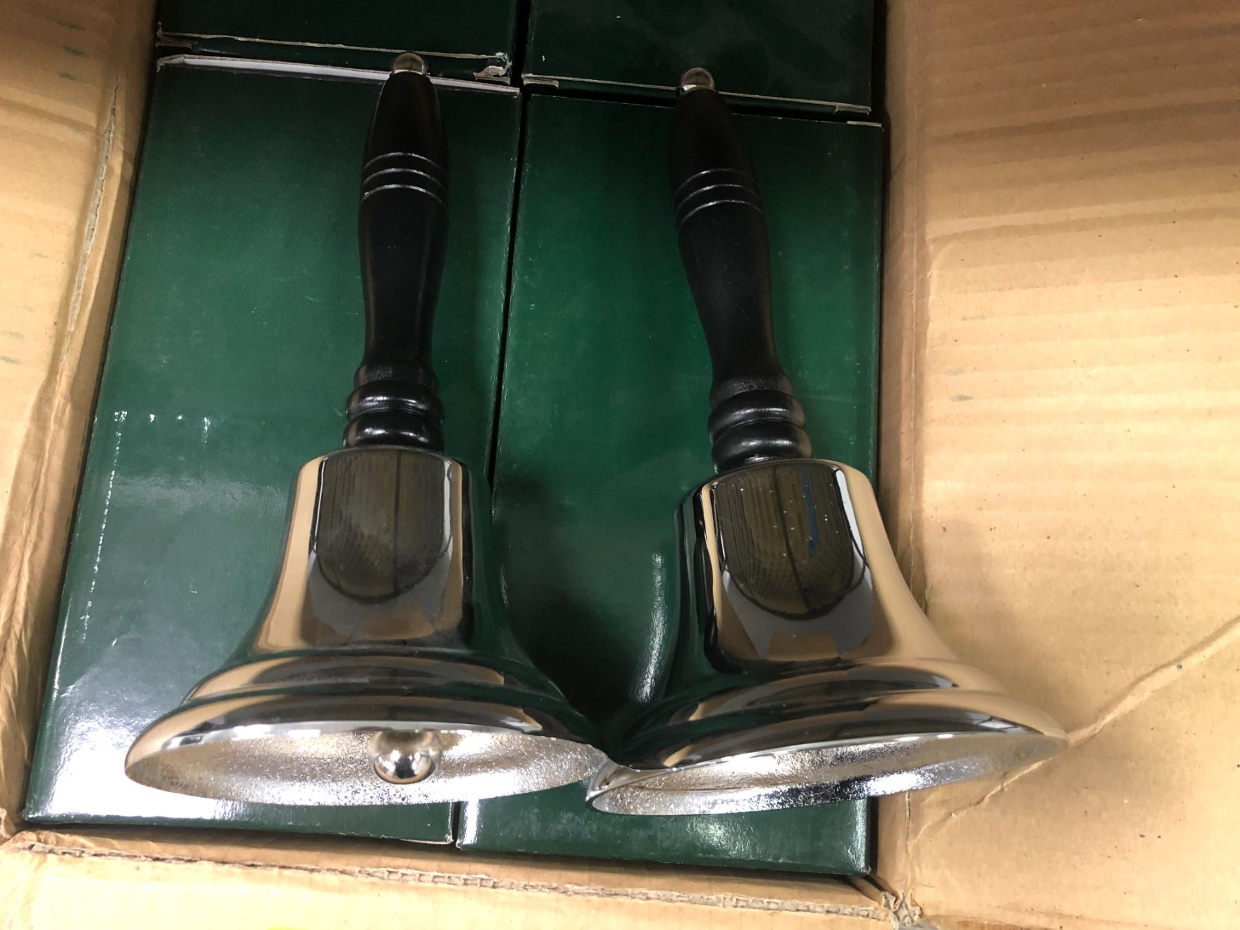 NEW box full of heavy-duty hand bells (approx. 12 pcs)