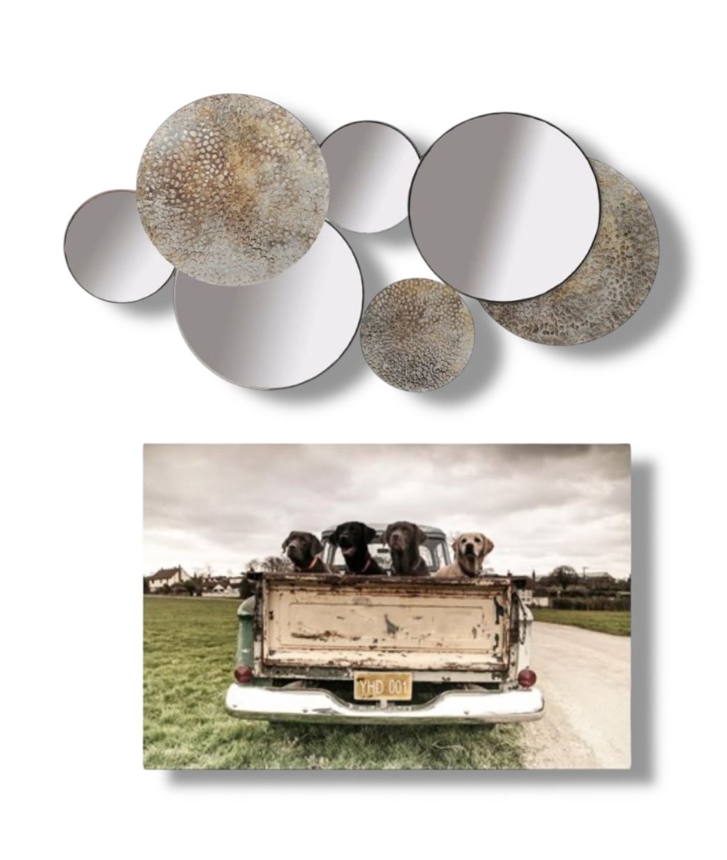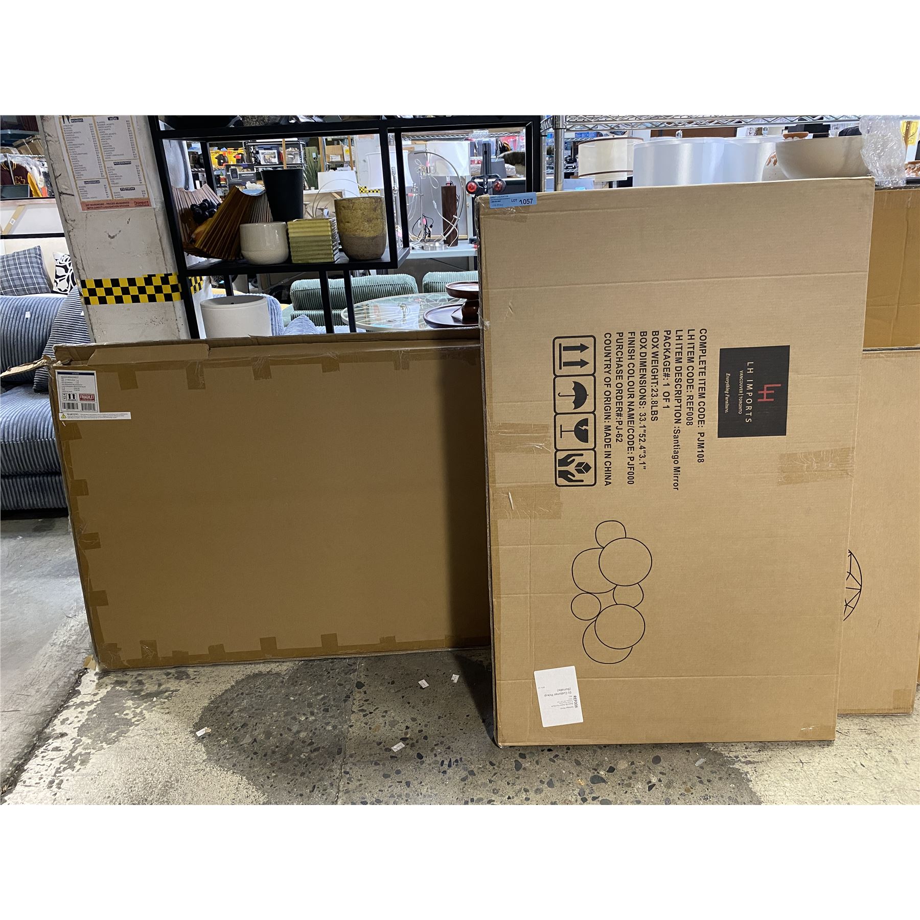 NEW in Box Group of 2 Decors & Mirror - includes an LH Santiago Mirror & Yosemite Glass Wall Decor 47 x 32 x 0.5