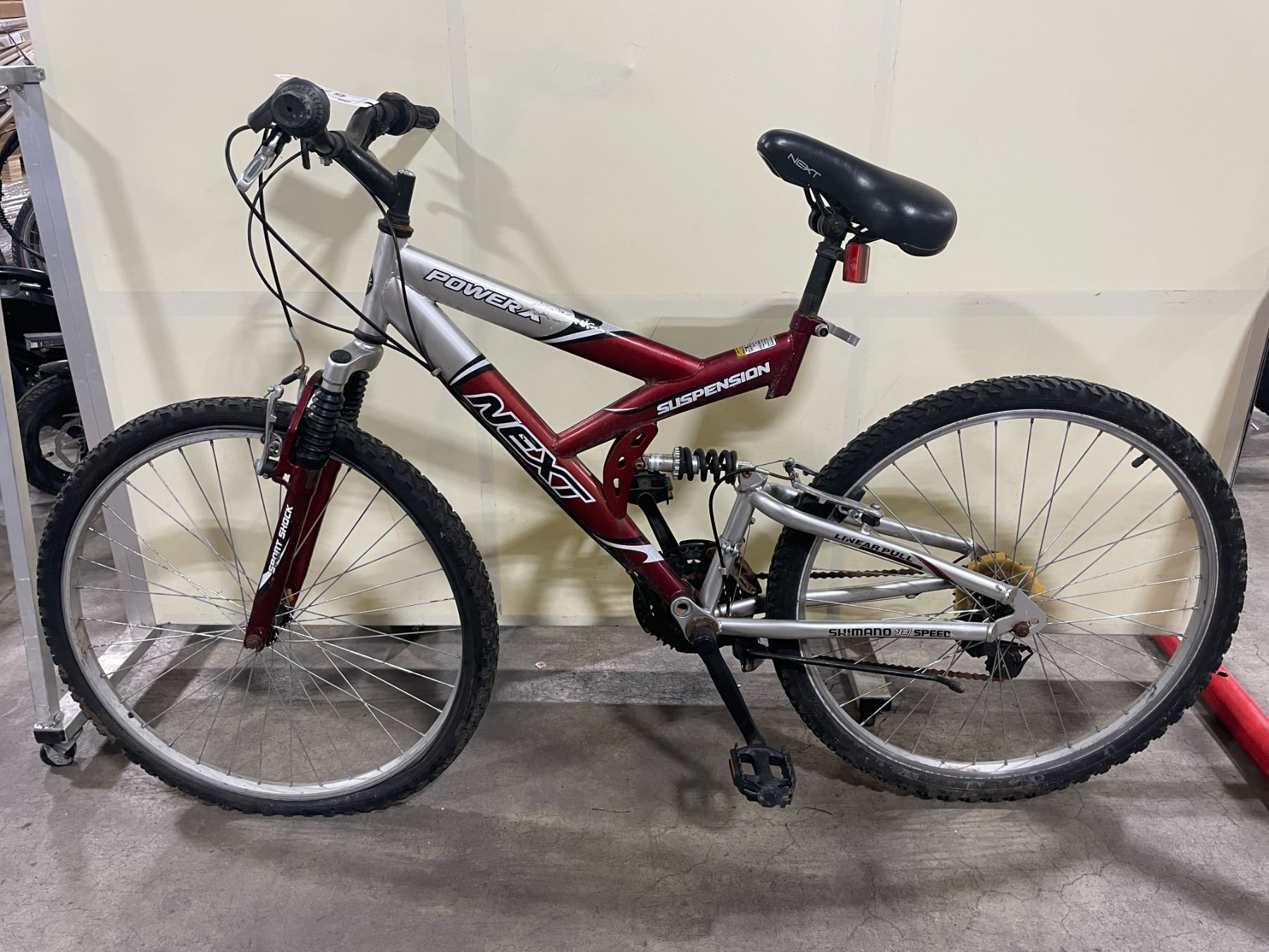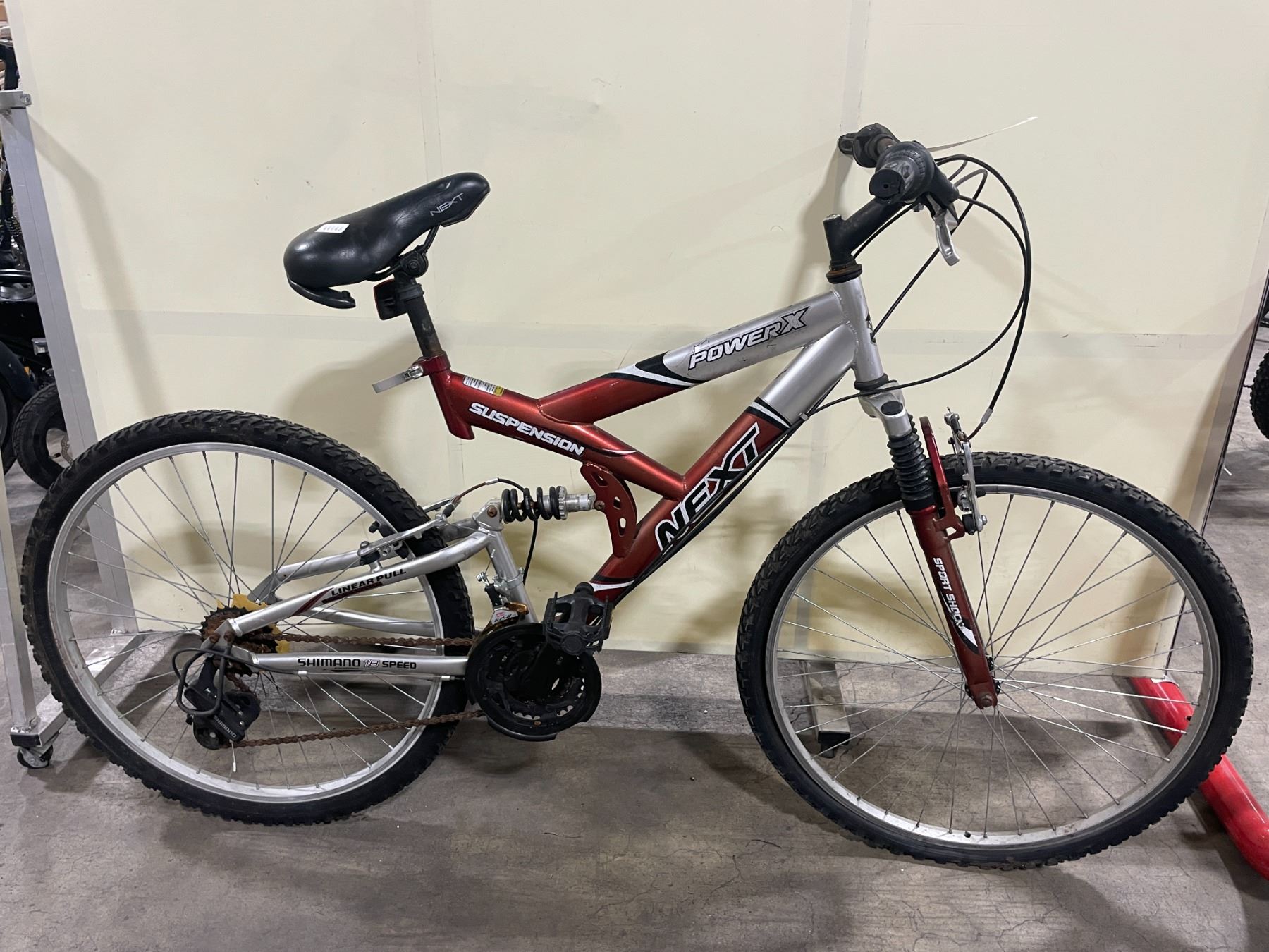 NEXT POWER X SILVER / RED 18 SPEED FULL SUSPENSION MOUNTAIN BIKE