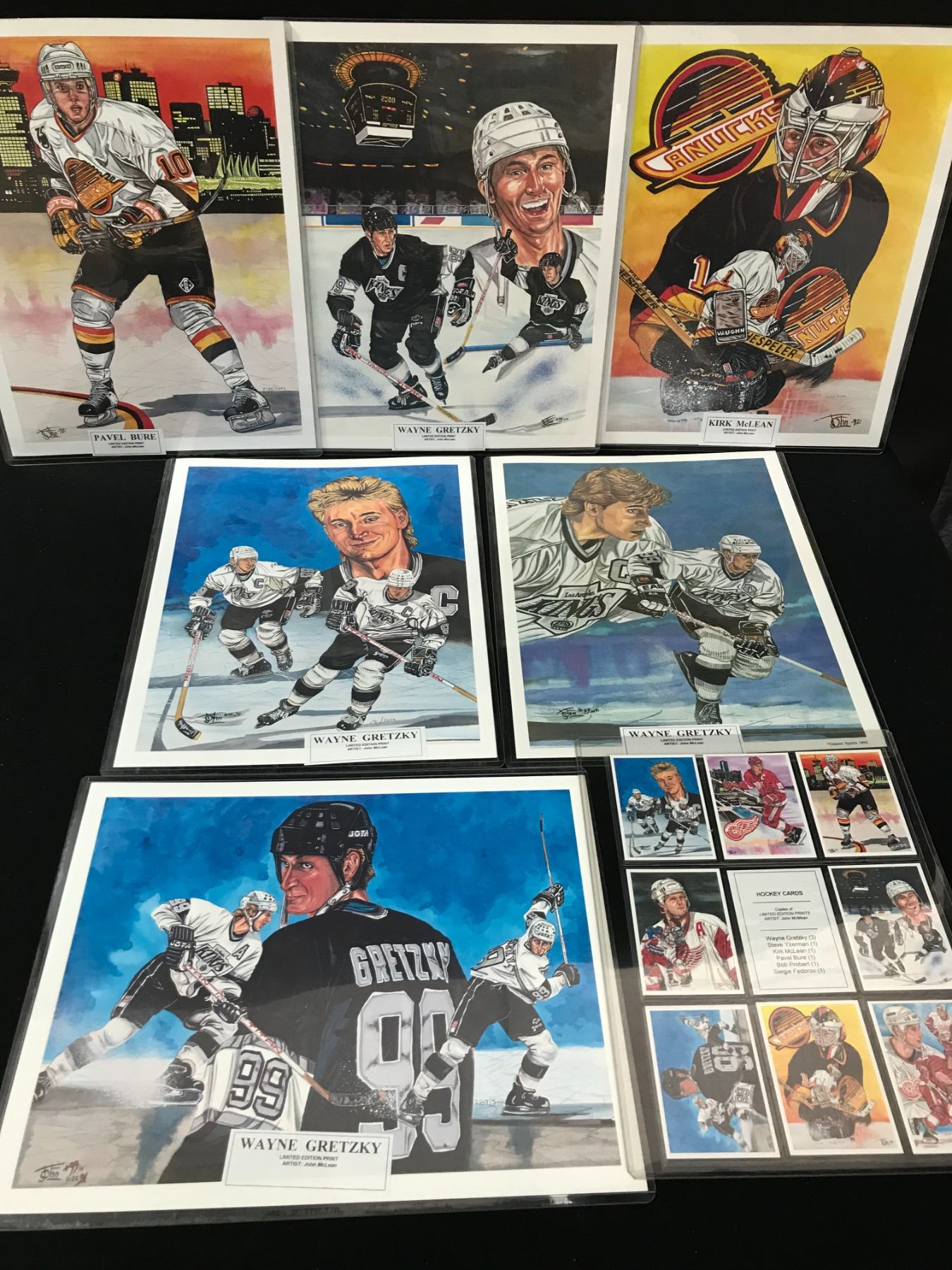 NHL ART PRINTS LOT WITH TRADING CARDS