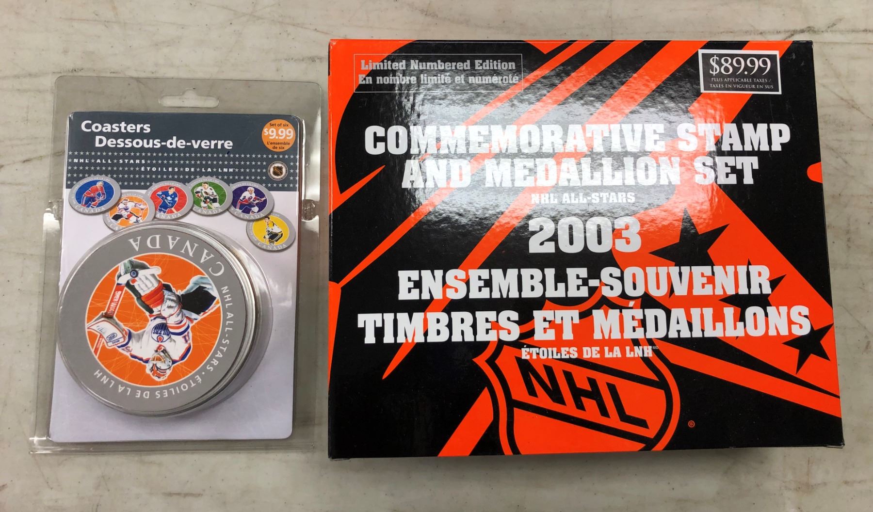 NHL All Stars Commemorative stamp & medallion set & NHL drink coasters set
