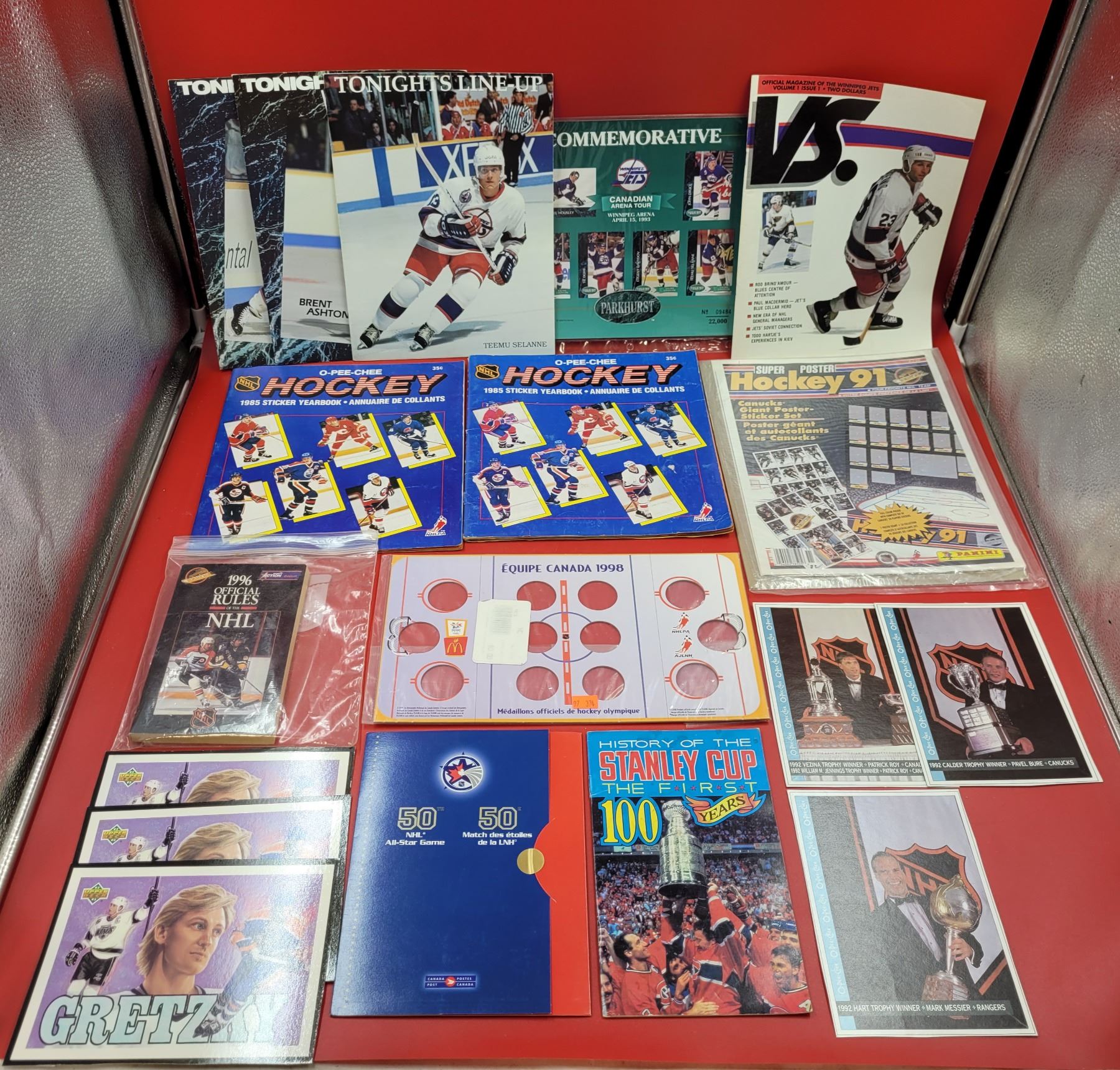 NHL Collectibles Lot w/ Game Programs, Rule Book, 1985 Sticker Yearbook, & More