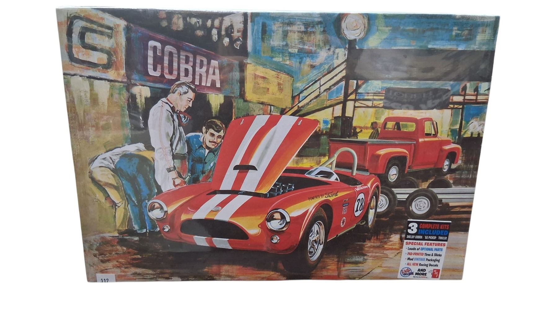 NIB 3 complete Gramd Prix model assembly kits all 1:25 scale, Shelby Cobra, 53 Pickup, Trailer